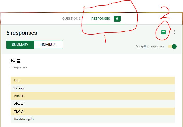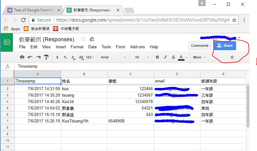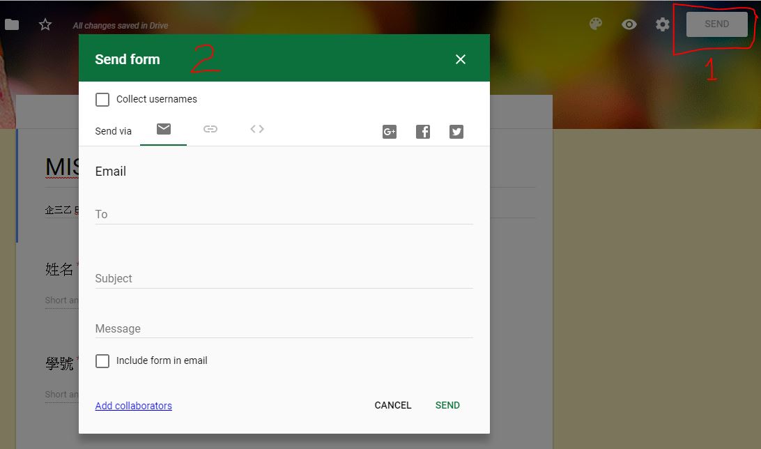 - 建立一個 Google 表單,來蒐集調查資訊、或訂單明細。但前面幾項資訊必須為: