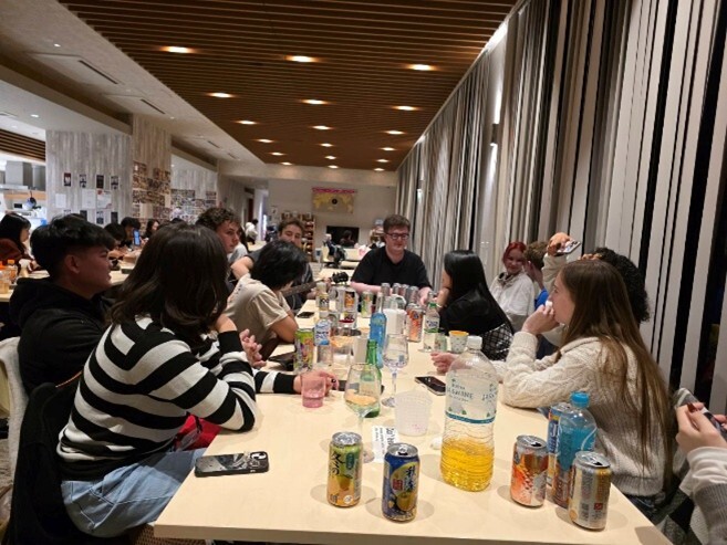 我是住在學校提供的IRC宿舍,學校在出發前的兩個月會讓你選擇要住IRC宿舍或是離學校2站距離的宿舍,價格都是一樣的,不過現在住的IRC宿舍是6人房、另外一個則是單人房。一開始的我對六人房是有點抗拒的,因為會擔心清潔或是文化的差異而導致宿舍生或不愉快,不過來到這裡的短短幾個月我覺得這是最棒的決定。首先雖然說是六人房、不過其實是6間單人房、每個房間也都有密碼鎖、所以在隱私方面是完全不用擔心,另外是其實在宿舍當中因為大家的作息及課程都不太一樣、所以除非有特定的聚會不然也很少會碰到,浴室則是每個星期都會有掃地的阿姨來做清潔所以完全不用掃廁所,最後則是這裡的水和電都已包含在房租裡、所以即是是寒冷的冬天也可以開著暖氣休息。除此之外、在5樓的大廳有著公共的大廚房以及大廳可以去和每個國家的人去做交流,我來到這裡之後常常有事沒事就會跑去5樓和大家聊天,端看於你喜歡和那些國家的人相處,英文和日文都會非常頻繁的使用到對口語會是很大的進步。我其實在台灣的時候是一個非常不喜歡參加活動的人,不過在這裡能夠跟各式各樣的人來自世界各底的人交流真的是少數難得的機會,所以我也持續地在把握。若本身是I人不喜歡社交的也完全沒有問題,學校方面沒有任何的強制,總而言之就是很放鬆的一個狀態。